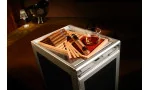 Extra praktiskt: En ultratunn tillbehörslåda i den övre delen gör det möjligt att stilfullt förvara snoppare, cederträspån eller tändare.