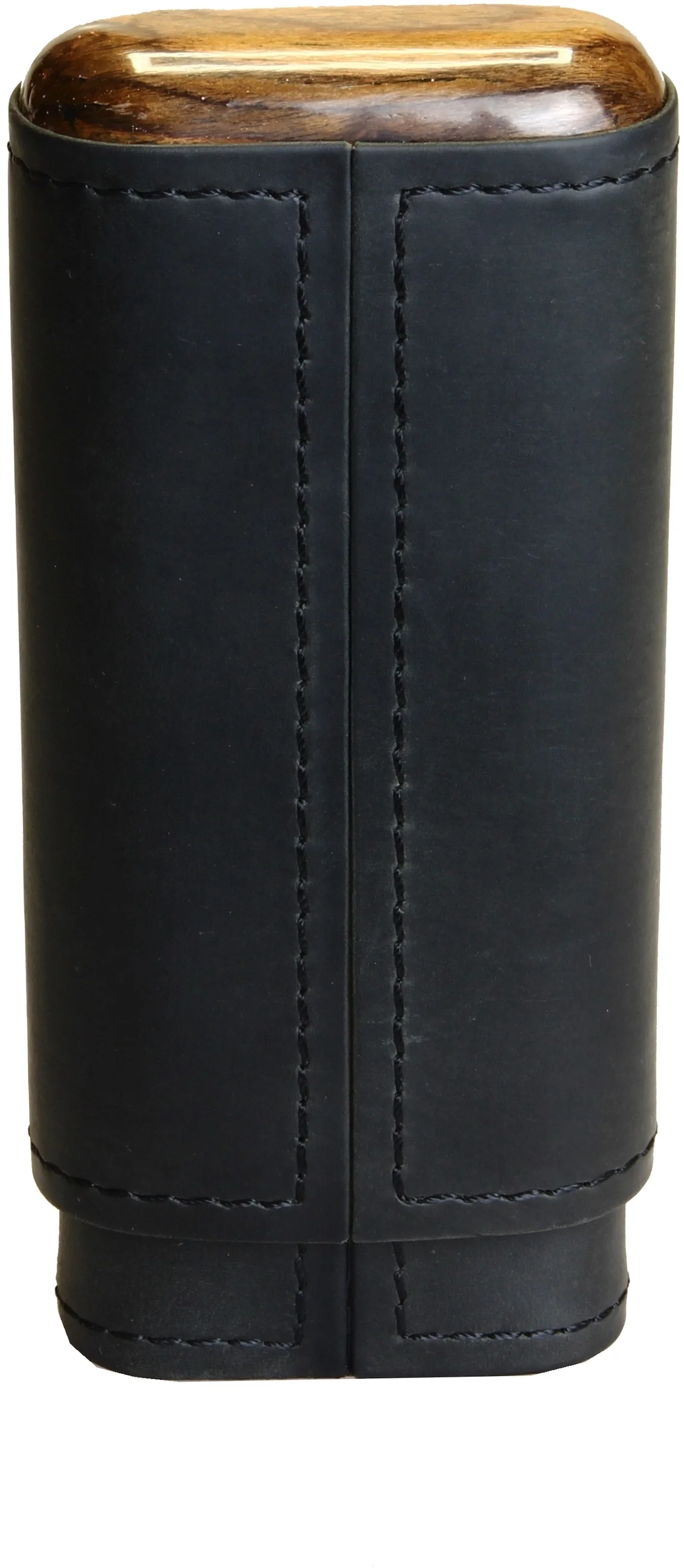 Det lyxiga fodret är vackert täckt av finaste svarta mockaläder från Indien, som kommer att förändras vid varje användning och gradvis få en alldeles unik karaktär. Äkta trä pryder toppen av locket och botten av fodralet och fångar ögat med en underbar högglanslackerad yta. Interiören är fodrad med en spansk cederträfanér för att ge 2 till 3 cigarrer en säker och stabil miljö. Ytterligare hjälp för att skyffa cigarrerna från onödiga skador får du med ett avdelarsystem som hjälper till att hålla cigarrerna på plats under transport.