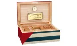 - Elegant design: Det hisnande motivet av den kubanska flaggan pryder ytan på denna humidor, vilket ger den en distinkt, kulturell touch. De fina träådringarna syns trots den högblanka lacken, vilket ger humidorn en unik, naturlig estetik.