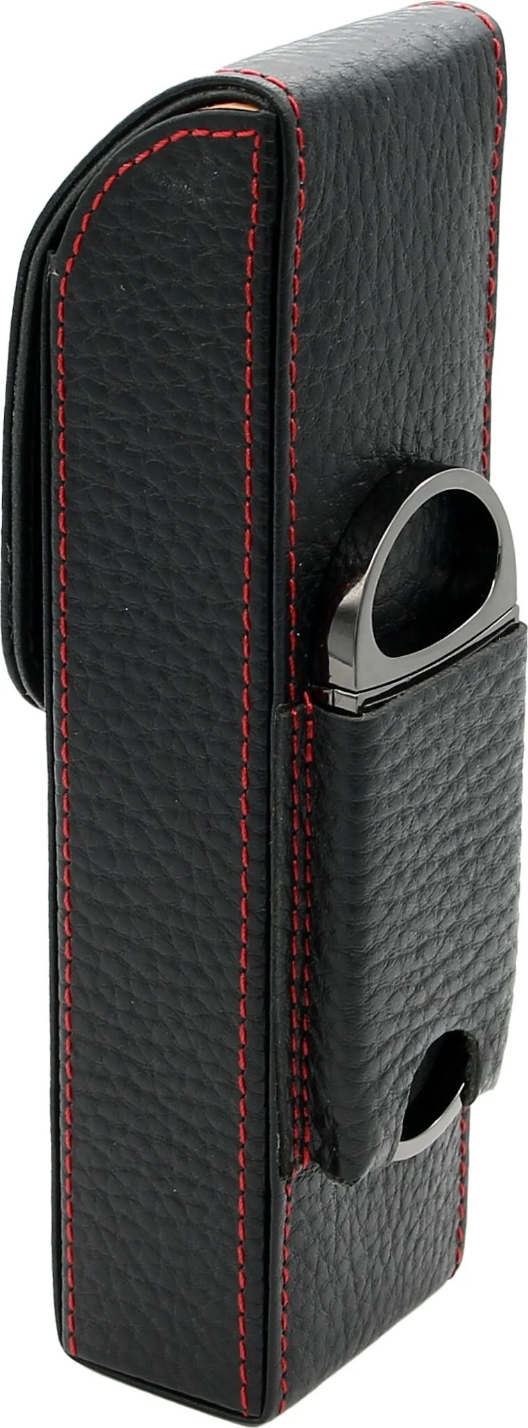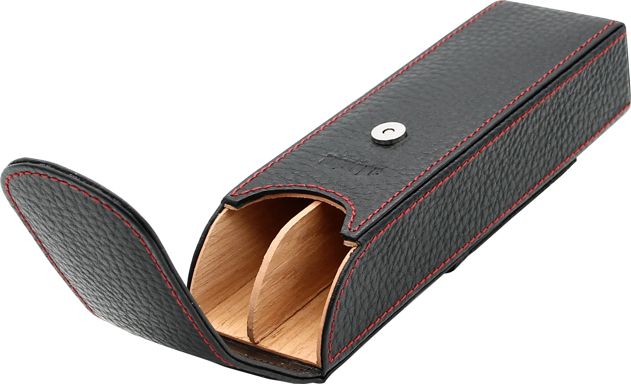 adorini fick-cigarrfodral läder 2 cigarrer svart och röd sömn med påse för snoppare eller tändare