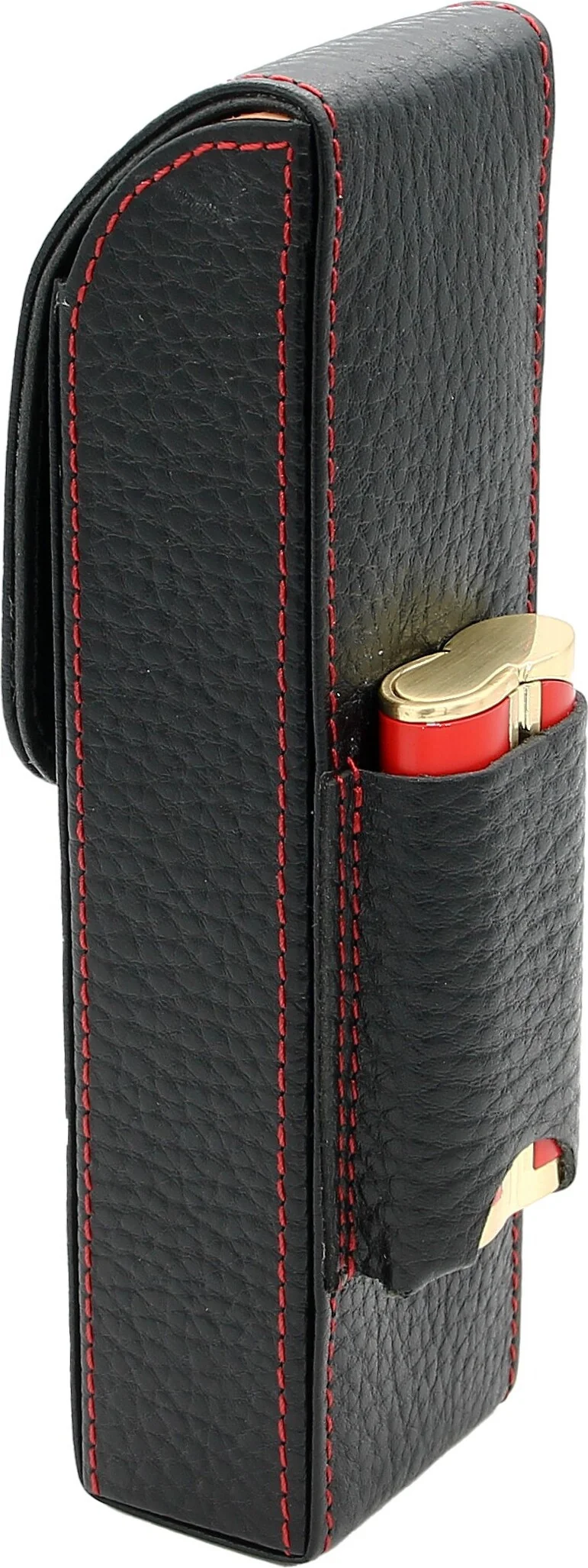 adorini Fick-cigarrfodral Svart med röda dekorativa sömmar med tillbehörsficka