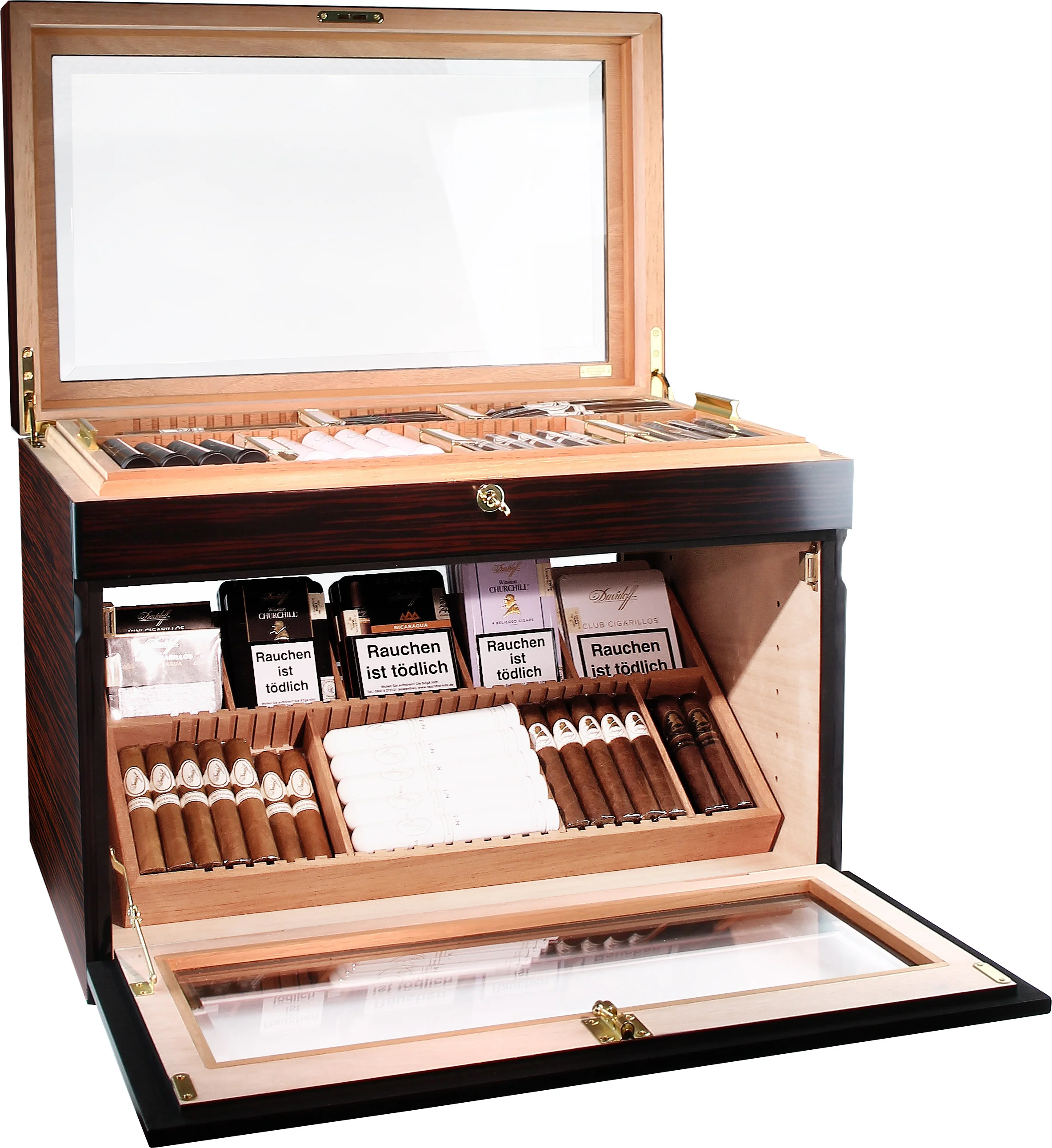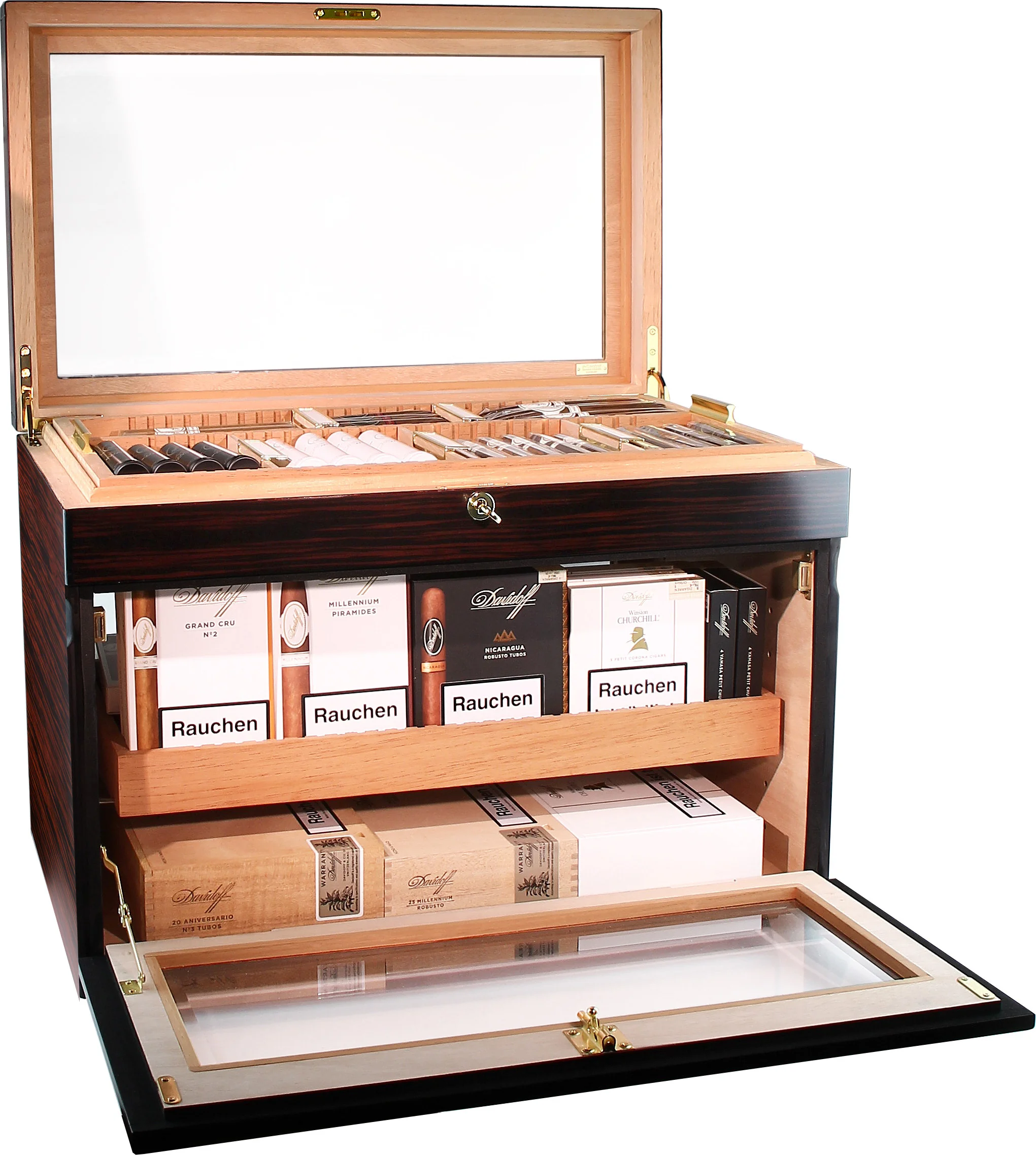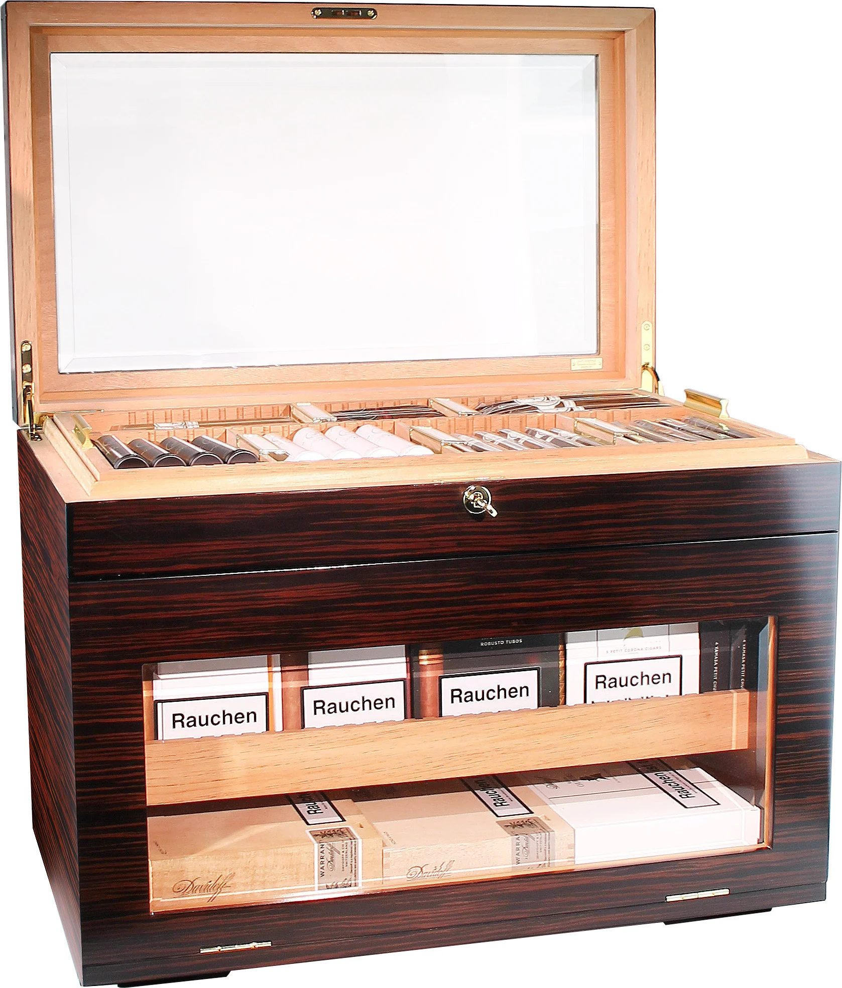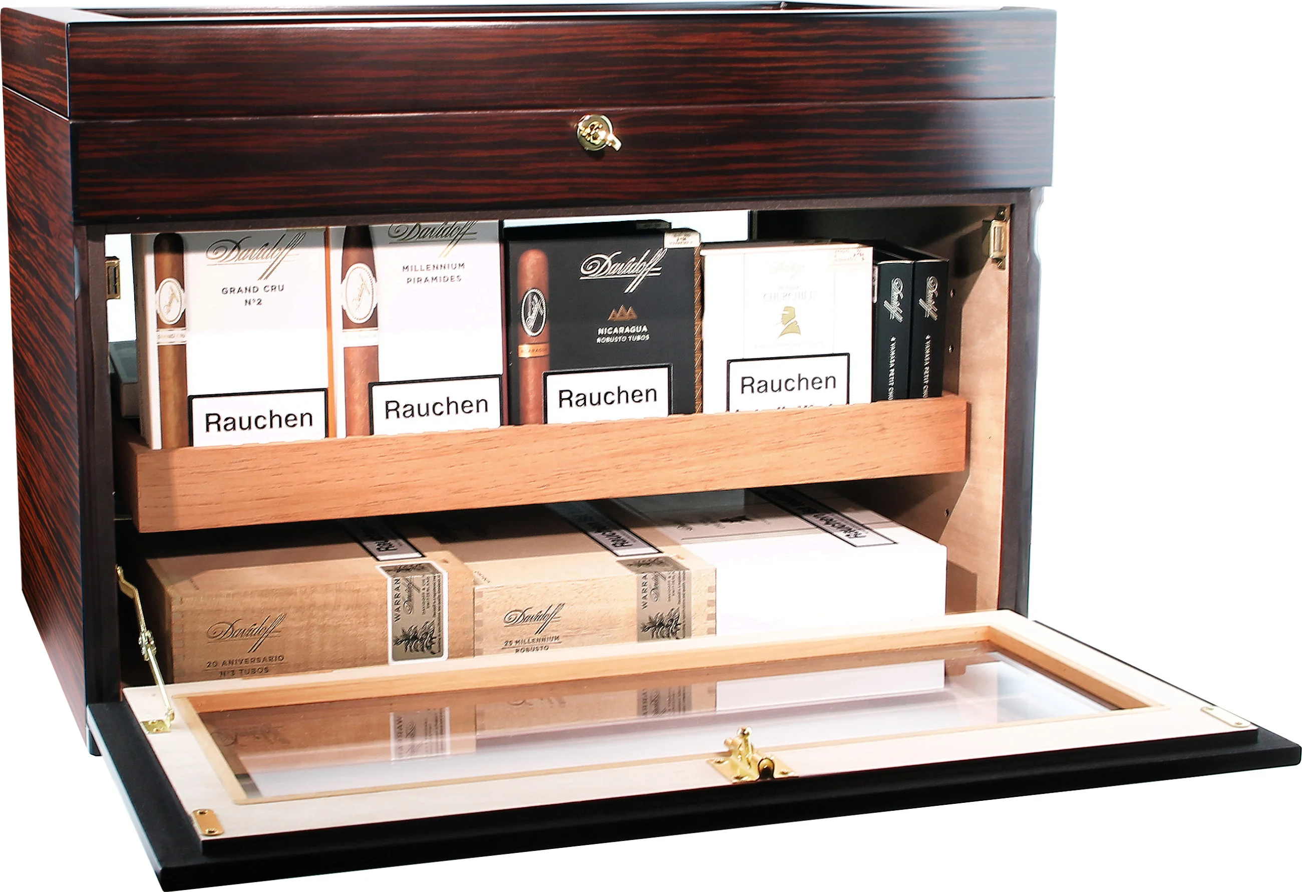 Enskilda cigarrer, lådor eller till och med hela cigarrlådor kan förvaras på flera nivåer. Interiören kan delas in i olika fack: