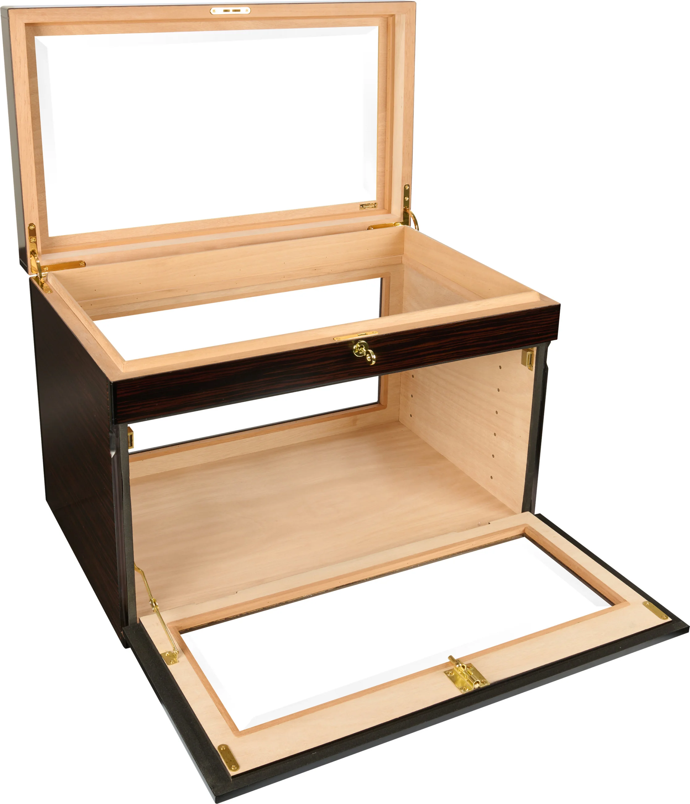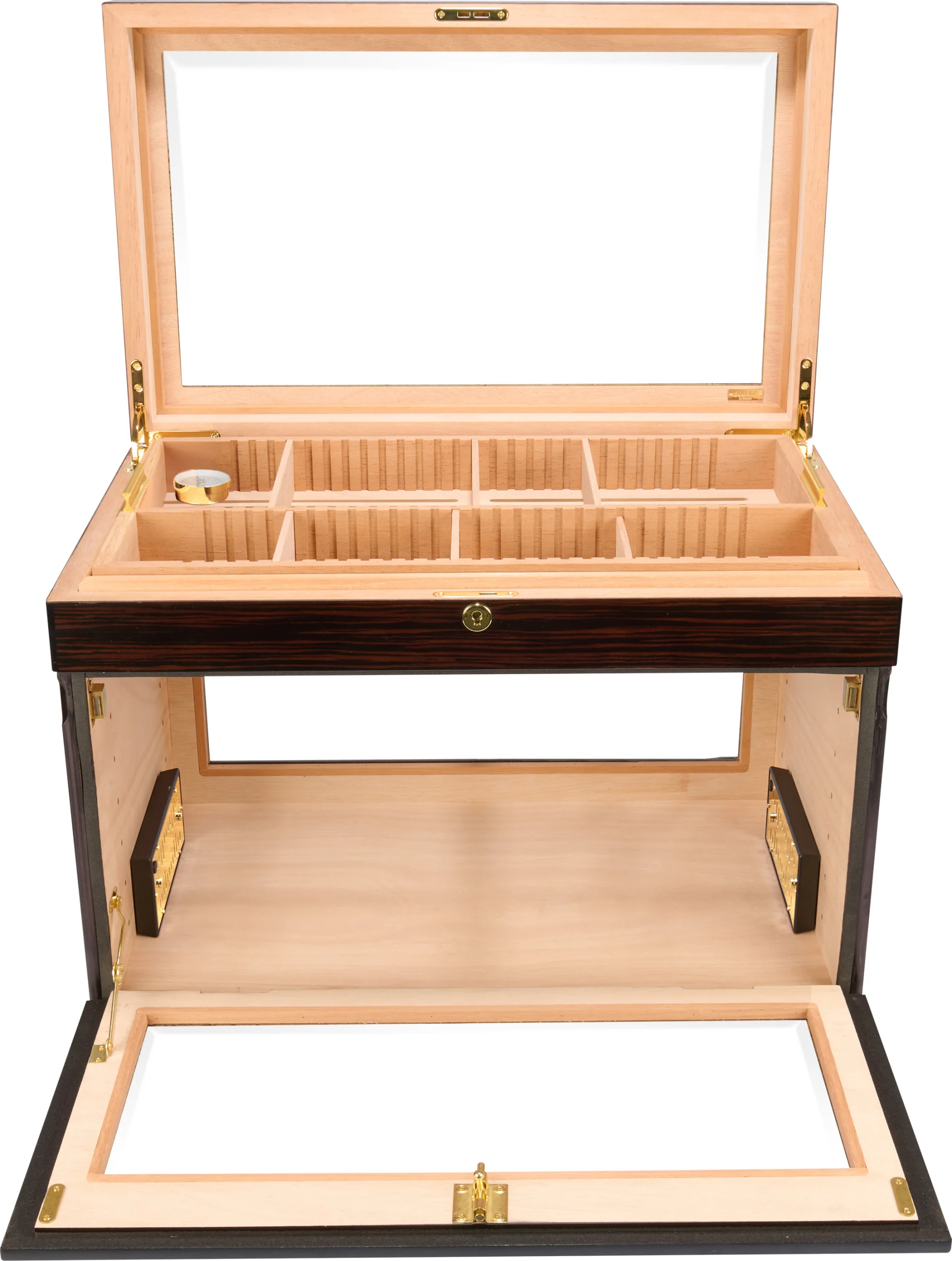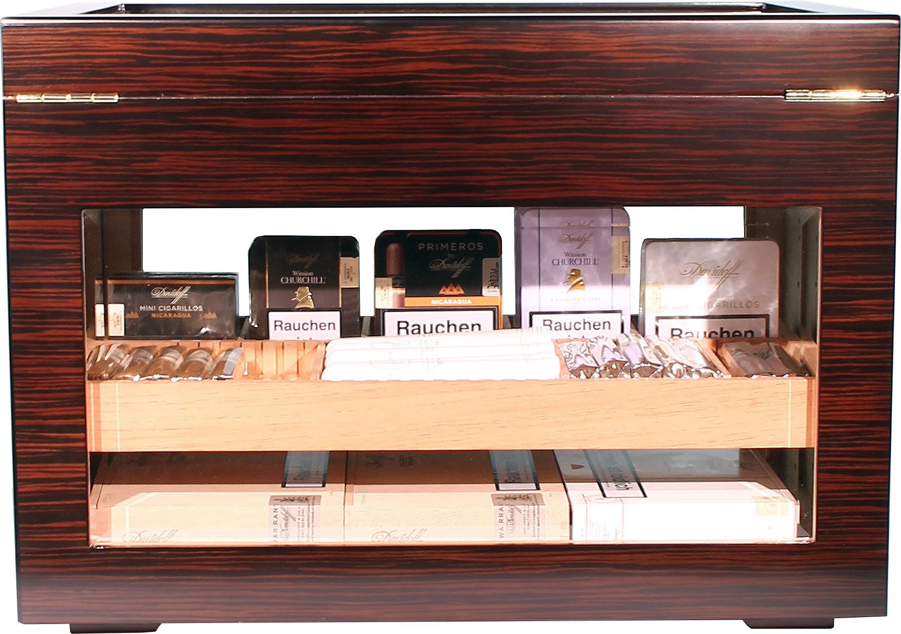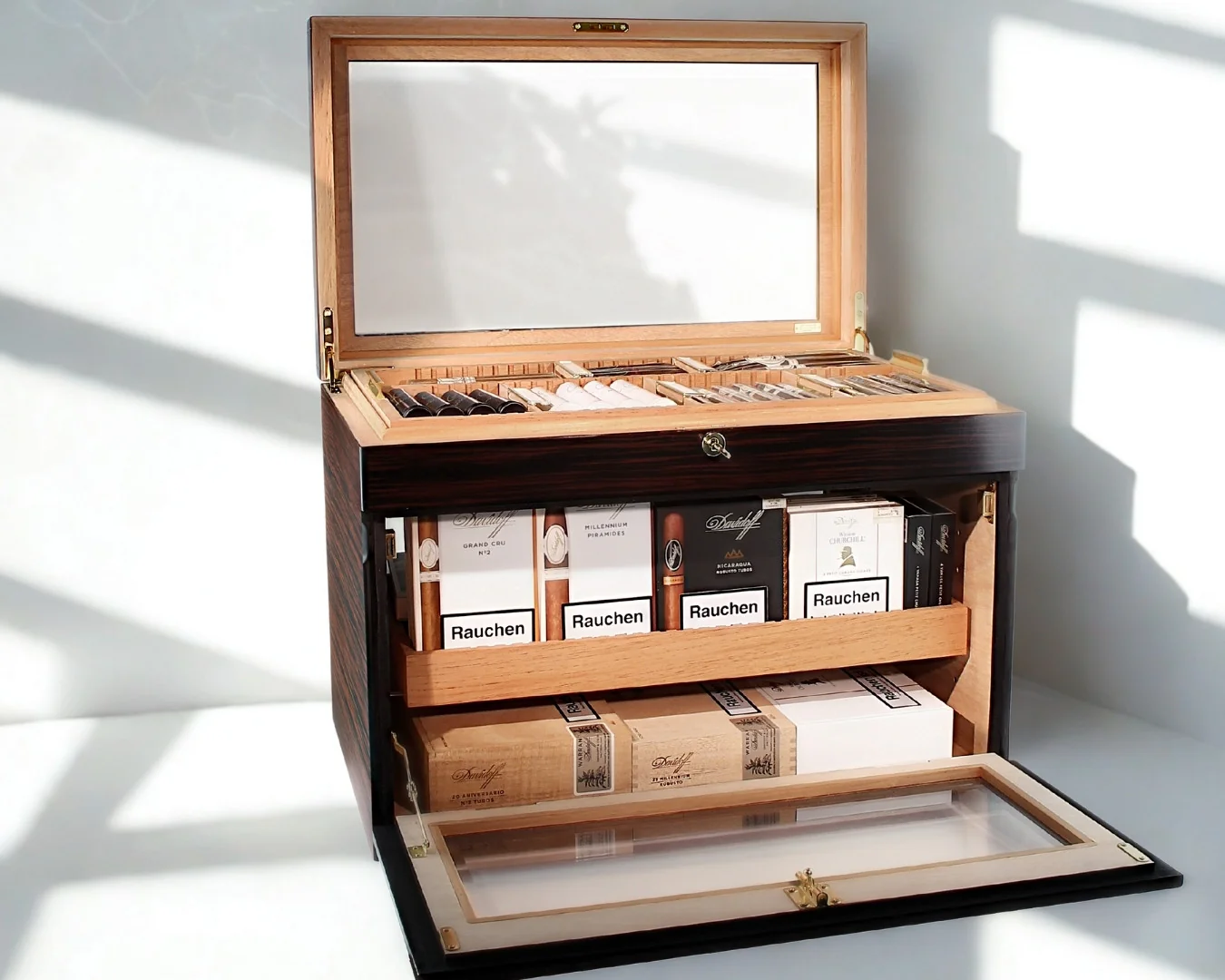 Enskilda cigarrer, lådor eller till och med hela cigarrlådor kan förvaras på flera nivåer. Interiören kan delas in i olika fack: