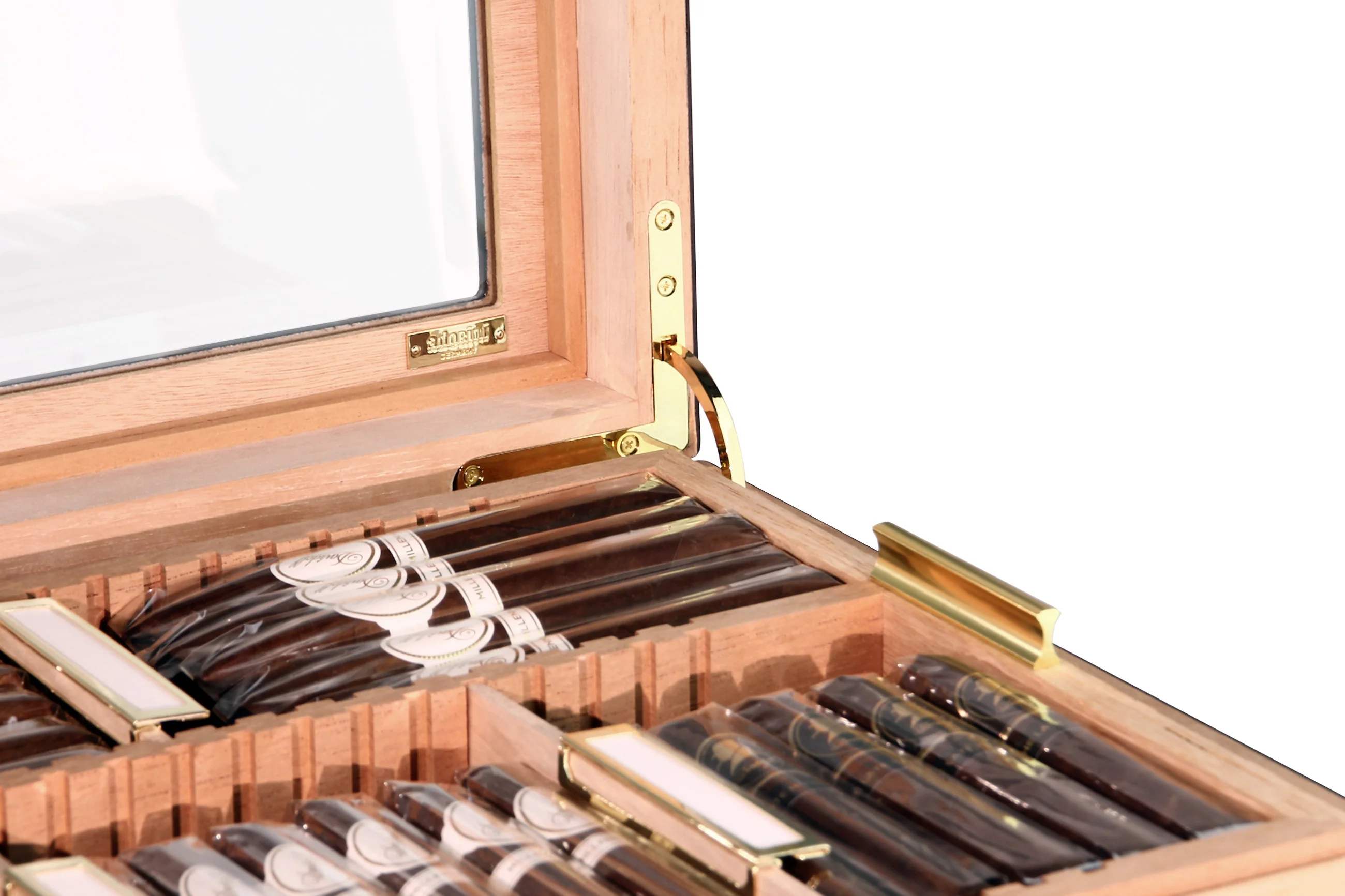 - Brickor för enskilda cigarrer och lådor kan sättas in och placeras i vinkel för optimal presentation.