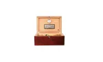 Humidoren är även utrustad med ett lås för att skydda mot obehörig åtkomst. Ett dubbelt nyckelset ingår så att du har en reservnyckel. Invändigt har humidoren mattsilvergångjärn och en särskilt stark tätningslist, som säkerställer optimal luftfuktighet. En vertikal avdelare möjliggör ytterligare indelning av interiören. Dessutom ingår ett avtagbart cigarrställ i nivåer, som organiserar humidoren på ett både estetiskt och funktionellt sätt. Stället är utrustat med ventilationsspår för optimal luftcirkulation.