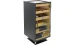 Vare sig det är för hemmet, kontoret eller butiksmiljöer är detta skåp på fot med svart finish med flera lackerade detaljer perfekt för att hålla upp till 1200 cigarrer i Corona-storlek i perfekt skick, med cigarrer som är synliga genom den låsbara glasdörren eller glasrutan på toppen av humidoren. Med flexibilitet i åtanke skapade adorini-teamet gott om förvaringsutrymme fodrat med spansk cederfanér som rymmer både lösa cigarrer och cigarrer i lådor. Uttagbara brickor och avdelare med etikettklämmor ger ännu fler alternativ och hjälper till att hålla cigarrerna organiserade på upp till fyra nivåer.