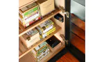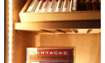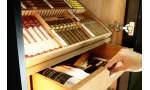 Låda för cigarrtillbehör i mitten av skåpet, på rostfri skena med ventilationsutrymme vid bakre väggen