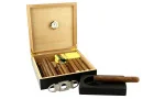 Med BigSmoke Humidor Set svart får du en pålitlig följeslagare för ditt personliga cigarrnöje, perfekt för dina första steg eller som ett stilfullt tillskott i din samling.