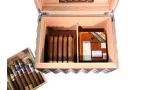 Humidoren erbjuder en uppskattad kapacitet på ca 150-175 cigarrer. Även mindre cigarraskar får enkelt plats här. Interiören är smart uppdelad: Ett avtagbart ställ i nivåer med spår gör det möjligt att förvara cigarrer individuellt och säkerställer samtidigt optimal luftcirkulation i den nedre delen. Den har även en flexibel vertikal avdelare för bättre organisering. Den nedre delen av insidan innehåller ytterligare en flexibel avdelare så att förvaringsutrymmet kan anpassas efter behov.