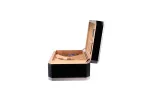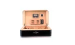 Med en kapacitet på cirka 100-125 cigarrer erbjuder humidoren gott om plats för din samling. På insidan säkerställer två flexibla, insättbara eller avtagbara vertikala avdelare optimal organisering. Den medföljande digitala hygrometern möjliggör noggrann mätning av luftfuktigheten, och det krävs inga extra inköp, knappcellsbatteri ingår redan. Fuktigheten regleras med hjälp av en passiv fuktare, som är stilfullt fäst i locket med en magnetisk trähållare. De silverfärgade soft-close-gångjärnen rundar av det högkvalitativa helhetsintrycket perfekt.
