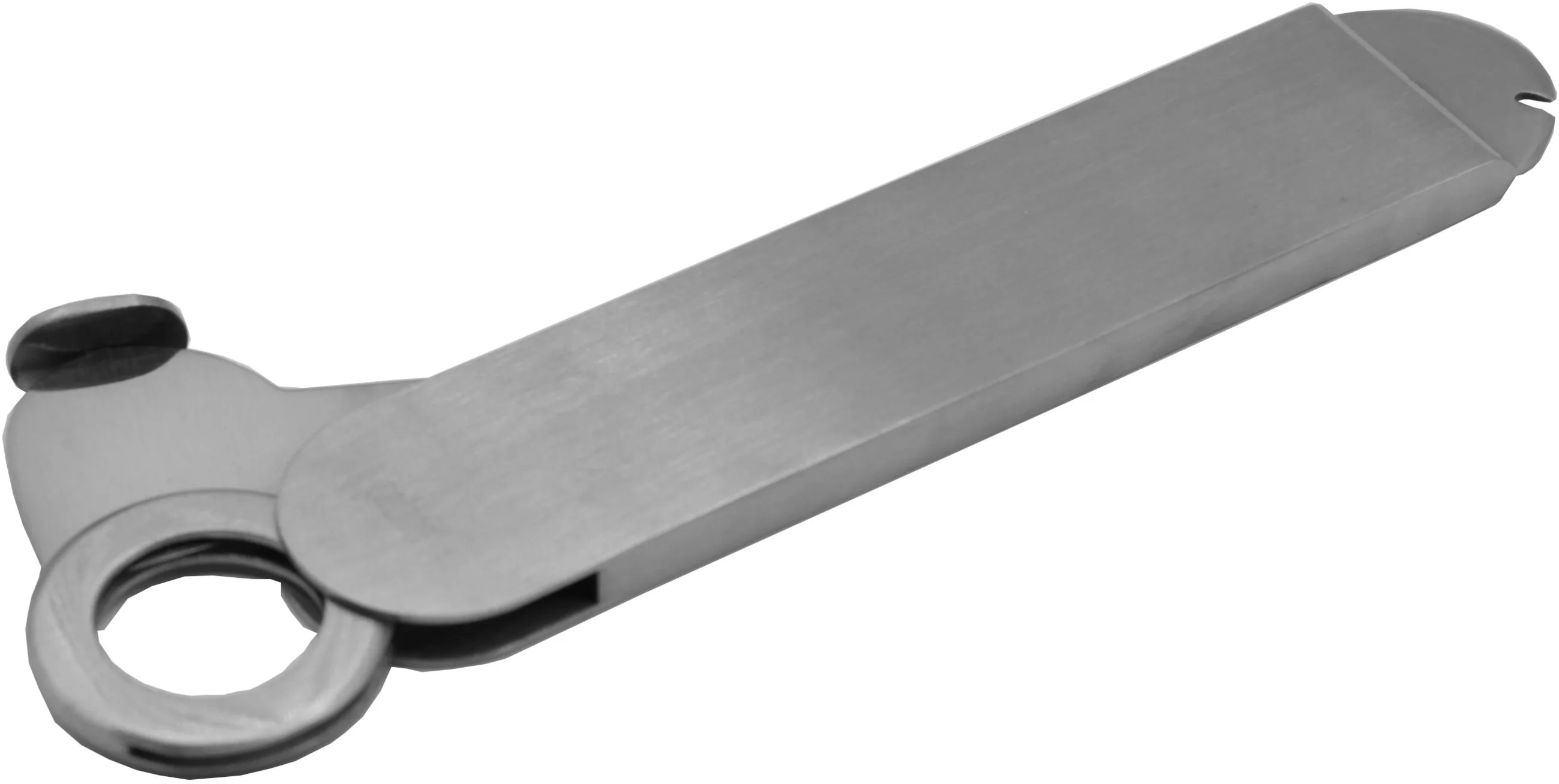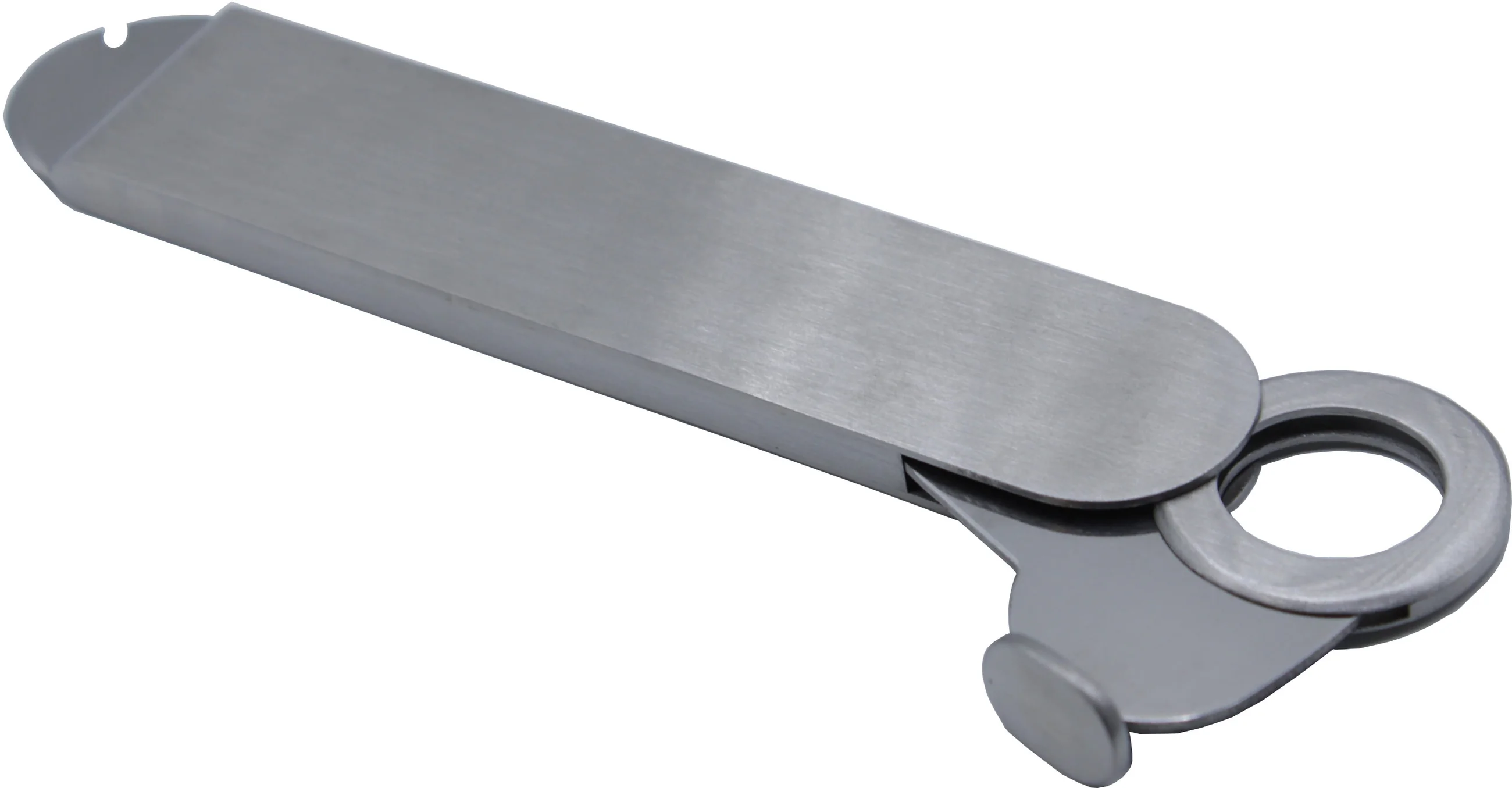 Den multifunktionella prylen har en skärare i rostfritt stål med ett enda blad som ger ett jämnt snitt med bara ett tryck på en spak. Den andra änden av verktyget är tunn och avsmalnande, vilket gör det till ett idealiskt sätt att bryta upp förseglade lådor med cigarrer. En skåra på denna tunnare ände används för att lyfta ut spiken ur cigarrlådor. Kanten på den skärande delen har en platt yta som fungerar som en liten hammare för att slå tillbaka spiken i cigarrlådorna och försegla dem så att innehållet förblir säkert.