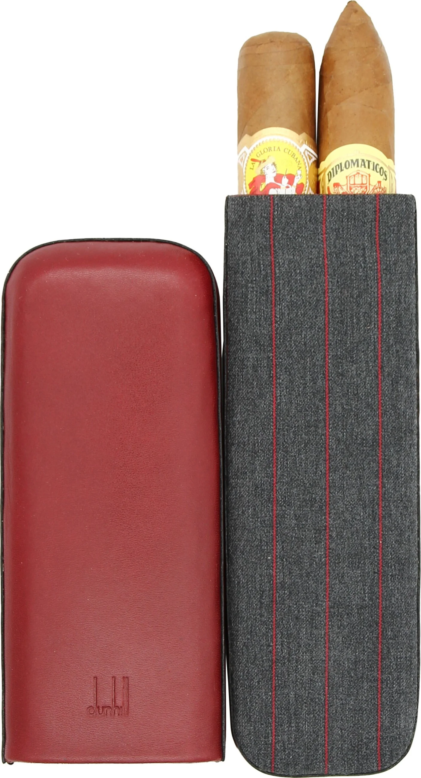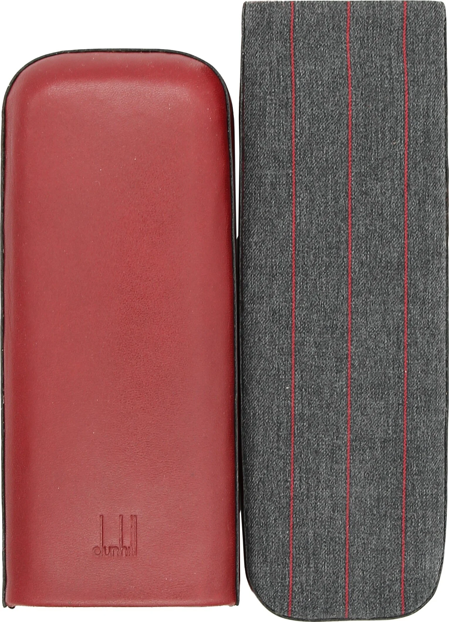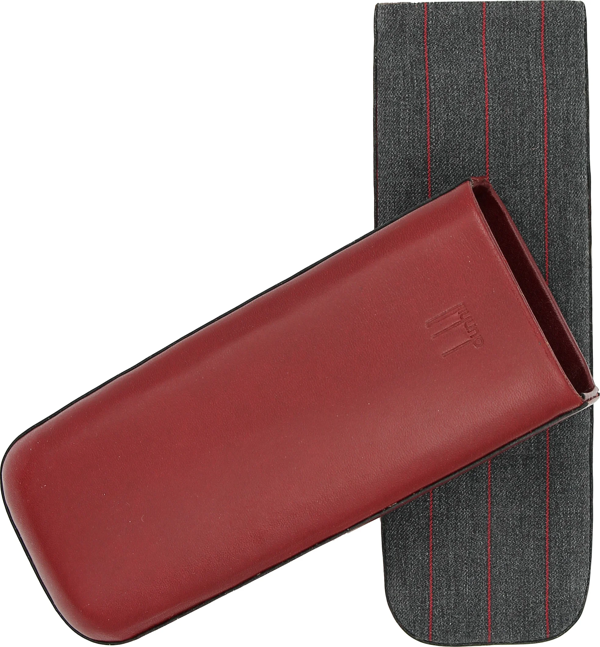 I det här skjutbara fodralet kombineras det finaste röda lädret med en tygbas. En exceptionellt elegant kombination som sällan ses i cigarrvärlden. På framsidan finns den omisskännliga Dunhill-märkespräglingen.