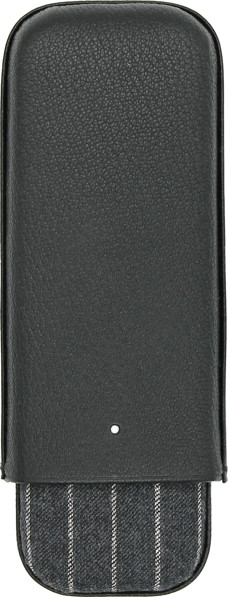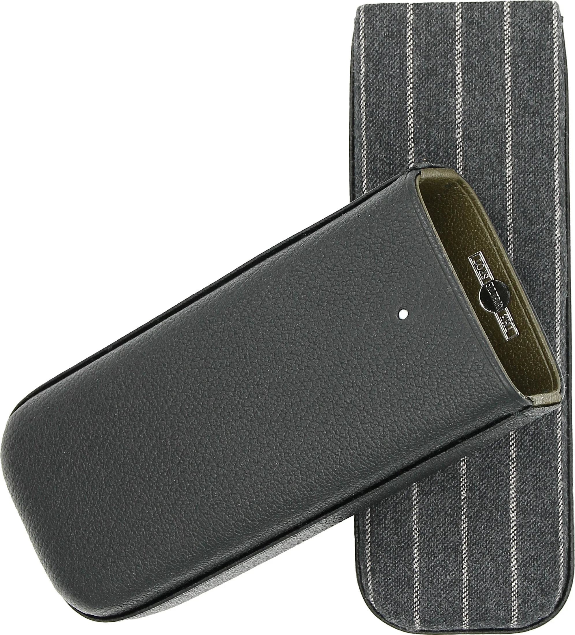Fodralet är tillverkat i England och rymmer två cigarrer. Interiören är fodrad med olivgrönt läder, vilket ger looken en speciell förfining.