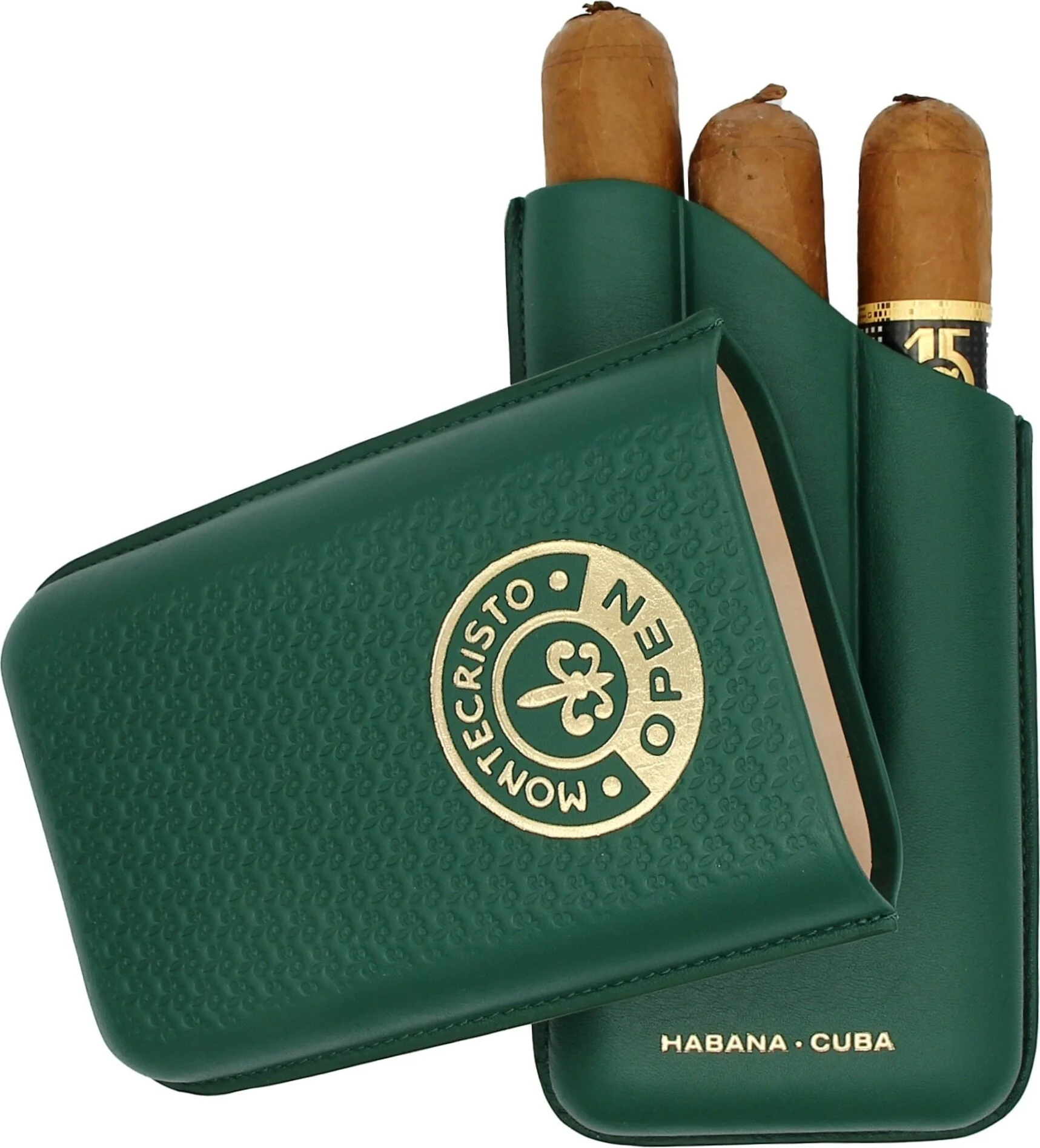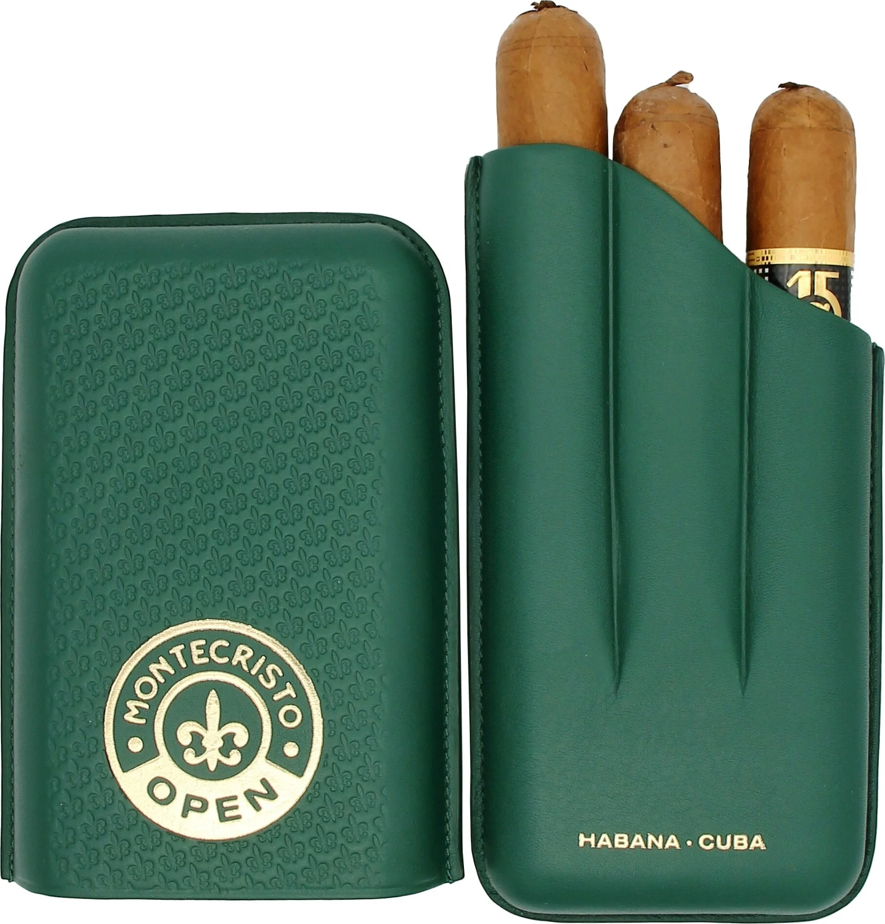 Montecristo Open Cigarrfodral i läder, grönt, för 3 cigarrer