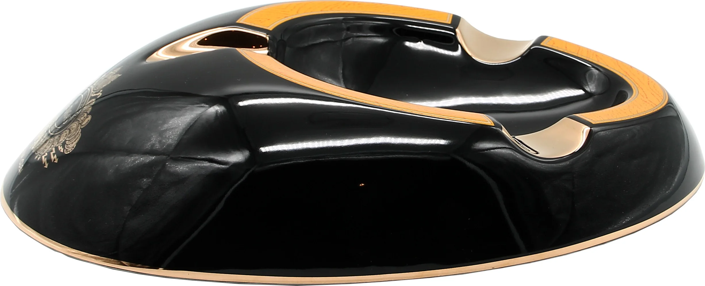 Partagás Classic Ashtray är ett imponerande designföremål från det väletablerade kubanska cigarrmärket Partagás. Askkoppen är tillverkad av högkvalitativt svart porslin och är dekorerad med guld och signaturorange accenter. Denna färgkombination ger den en elegant men ändå distinkt Partagás look.