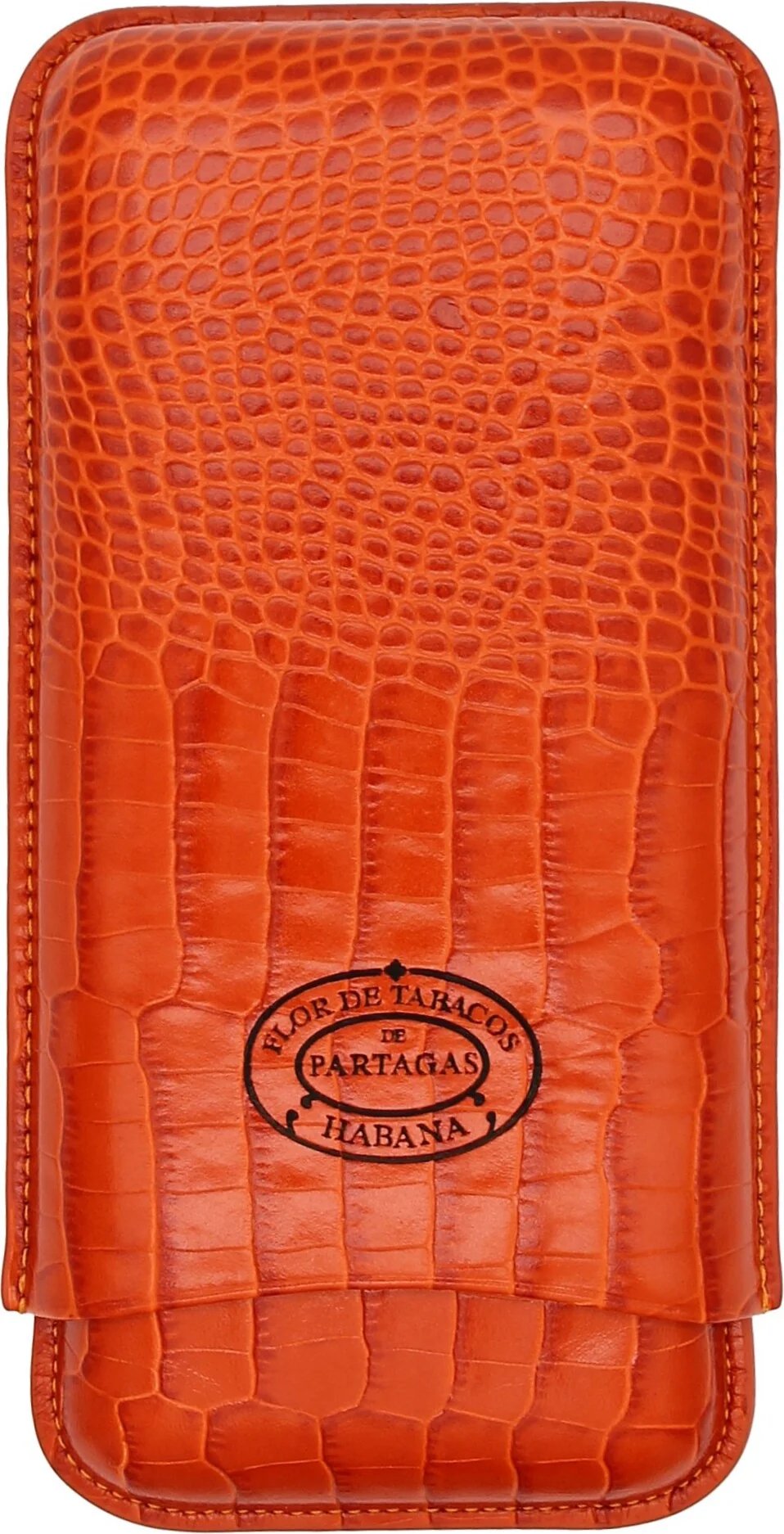 Partagas Classic cigarrfodral i äkta läder i en slående orange färg är en lyxig accessoar från det kubanska cigarrmärket Partagas. Den fint präglade läderytan med en krokodilliknande struktur ger ett autentiskt utseende. Varumärkeslogotypen, som otvetydigt representerar varumärket Partagas, är tydligt placerad på framsidan och ger fodralet ett exklusivt utseende.