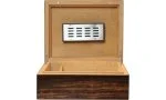 En frostad lackfinish framhäver vackert de ljusa och mörka bruna färgerna i den exotiska makassarfanéren. Den rikligt texturerade trästrukturen ger sofistikerad stil till vilken inredning som helst samtidigt som den ger förvaringsutrymme för upp till 35 cigarrer i Corona-storlek.