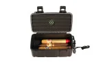 Denna svarta resehumidor i slitstark hårdplast är särskilt framtagen för säker transport av dina cigarrer. Perfekt för utomhusäventyr eller resor, erbjuder den pålitligt skydd för upp till 10 cigarrer och imponerar med sin robusta och funktionella design.