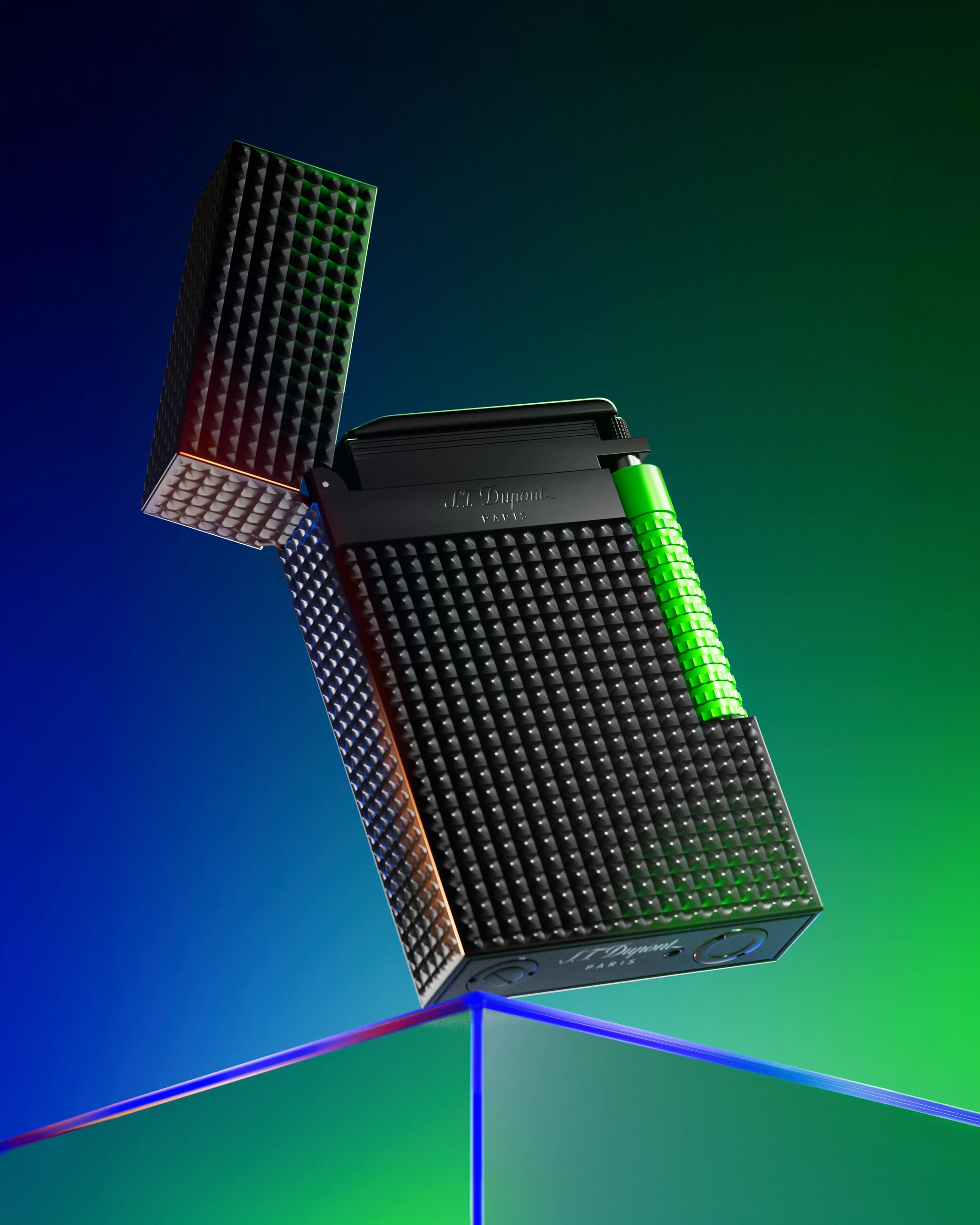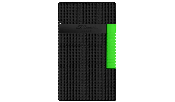 Le Grand Fluo-tändaren från S.T. Dupont i grönt är en unik produkt från Fluo-kollektionen som är utformad för att ge varumärkets klassiska produkter en modern och dynamisk touch. Denna kollektion kännetecknas av livfulla fluorescerande färger inspirerade av aktuella modetrender och innovativ fordonsdesign. Tändaren har ett unikt guillocherat mönster med en silkesmatt svart finish som ger en modern kontrast till den djärva gröna färgen.