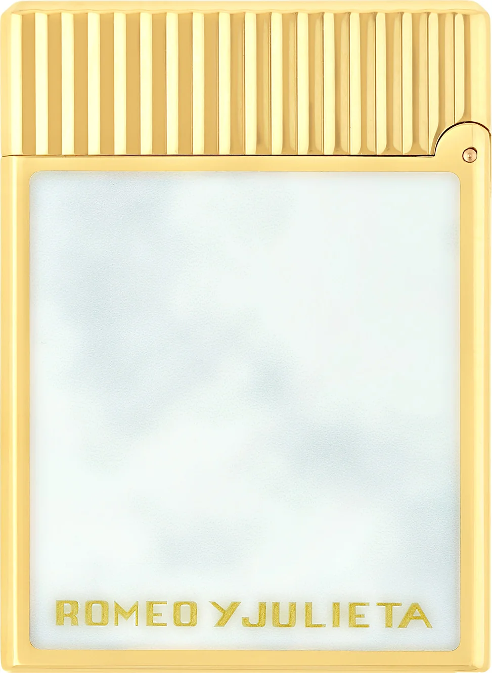 Framsidan av tändaren pryds av en reliefmedaljong som föreställer den berömda balkongscenen från Romeo och Julia, en symbol för kärlek och passion. Medaljongen omges av vit lack och upprepas även på baksidan. Där hittar du också den eleganta "Romeo y Julieta"-bokstaven.