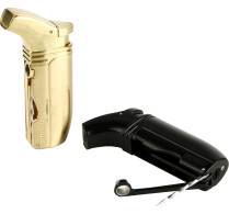 Oavsett om den är i lyxig guldfärg eller tidlös svart gör tändarens ergonomiska design att den är bekväm att hålla i handen och kompletterar tändarens moderna utseende och vinklade design. En 45-graders lutning hjälper de dubbla vindresistenta lågorna att leverera precision när du tänder cigarrer.