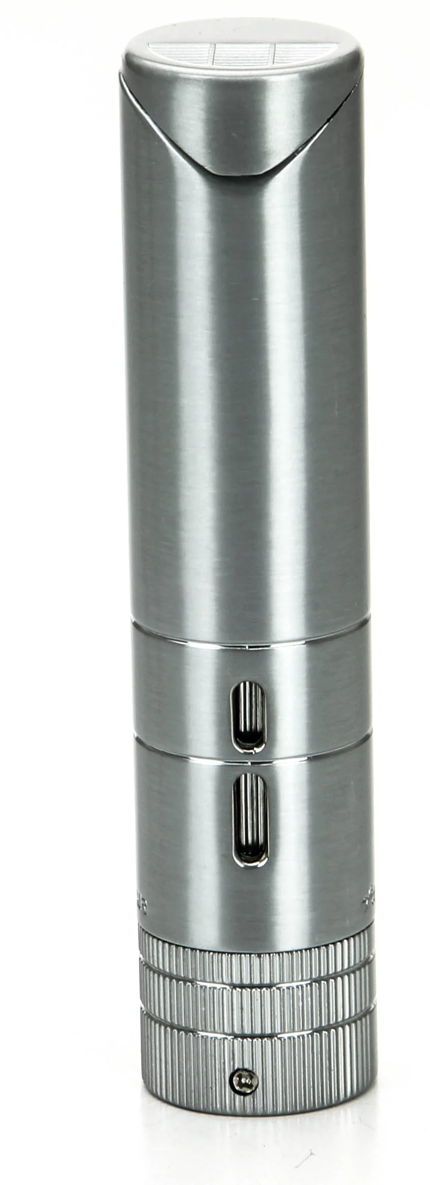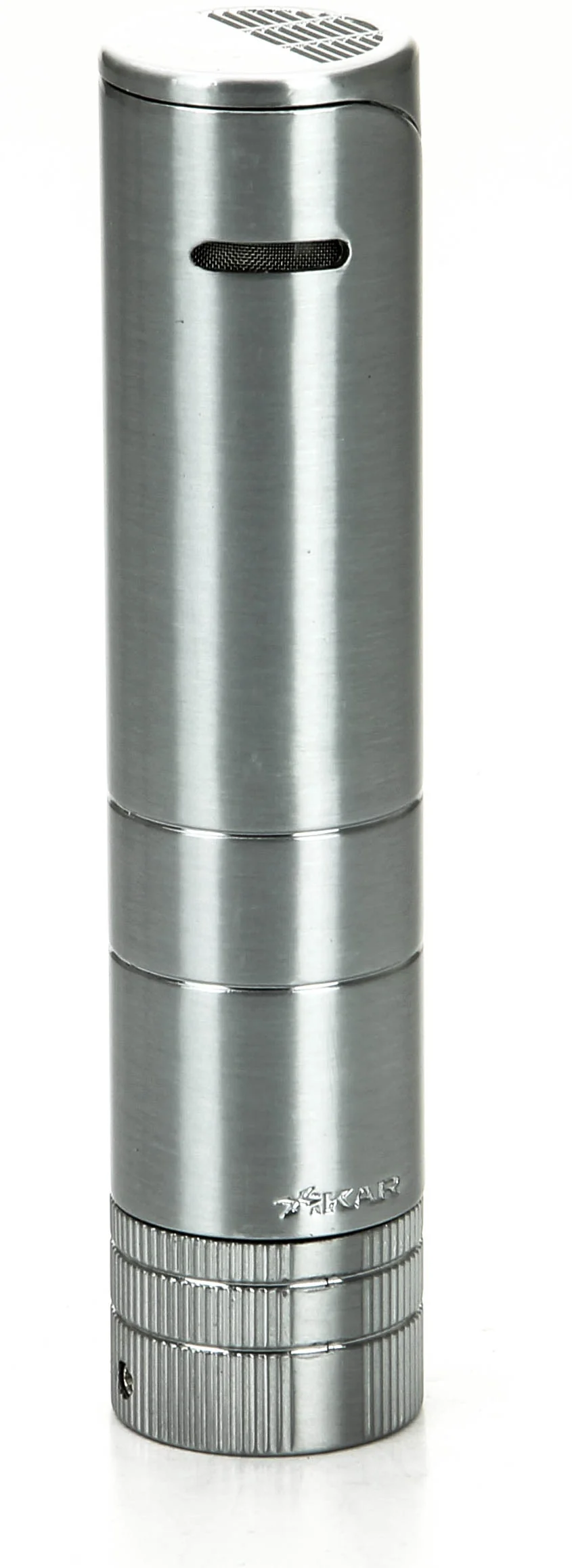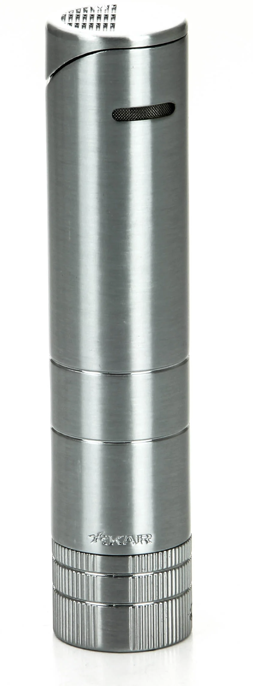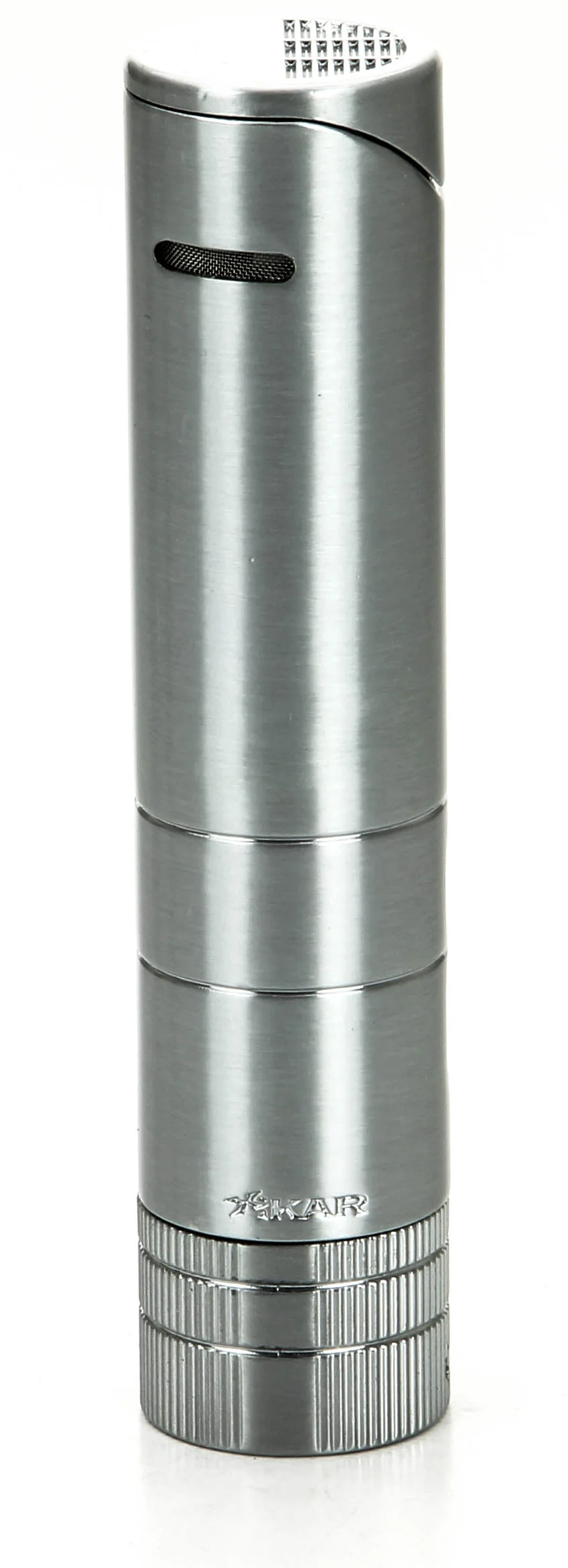 Xikar 5x64 Turrim Tändare Silver väcker uppmärksamhet med sin silverfinish och sofistikerade runda design. Storleken gör att tändaren enkelt kan förvaras i en resecigarrväska, samtidigt som den fungerar som en snygg bordständare.