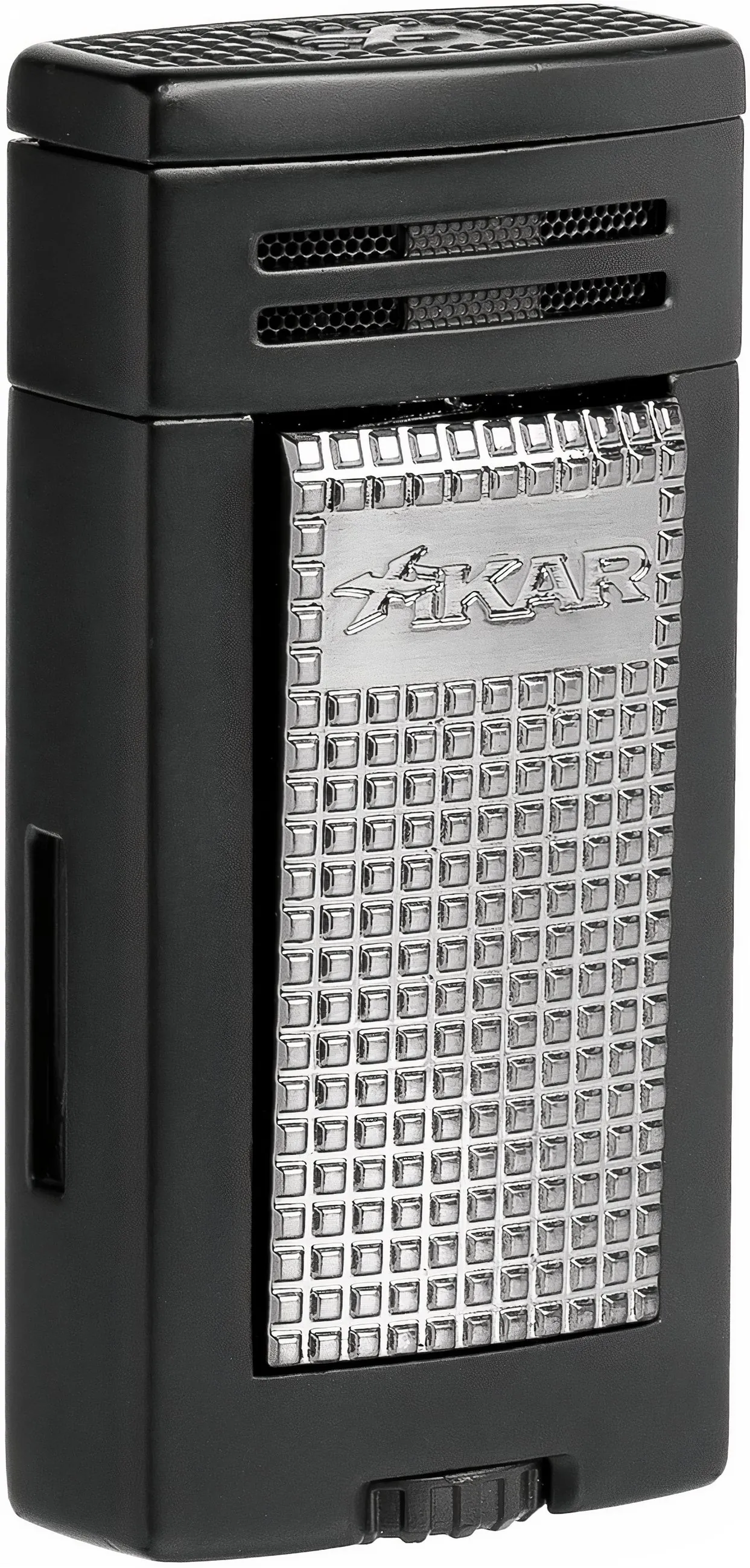 - Den kraftfulla tändningen skyddas av ett lock som håller damm och ludd borta för att bevara tändarens funktionalitet över tid. Xikar-logotypen pryder locket, som öppnas manuellt.